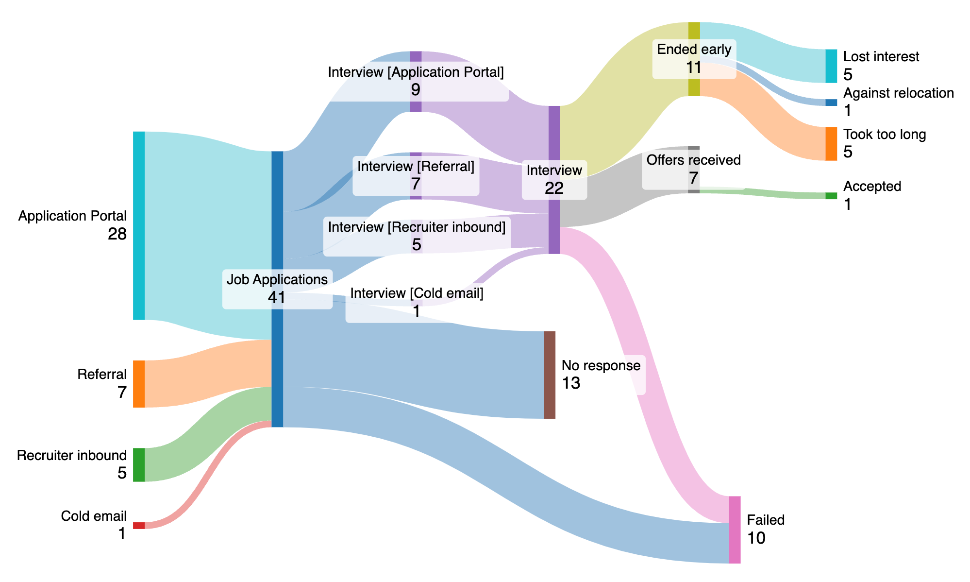 Looking at the numbers, I am surprised by the amount of interview I received through application portals. I expected nearly all applications to go unnoticed wholly expecting that I would have to network for referrals or cold email recruiters on LinkedIn. This was based on the experience of friends and the rumblings of the crowds that frequent Twitter and LinkedIn. I am also shocked that I got interviews from 100% of the places I was referred to. When I was working at BigTech, only 2 out of around 50 referrals I made ever got an interview.